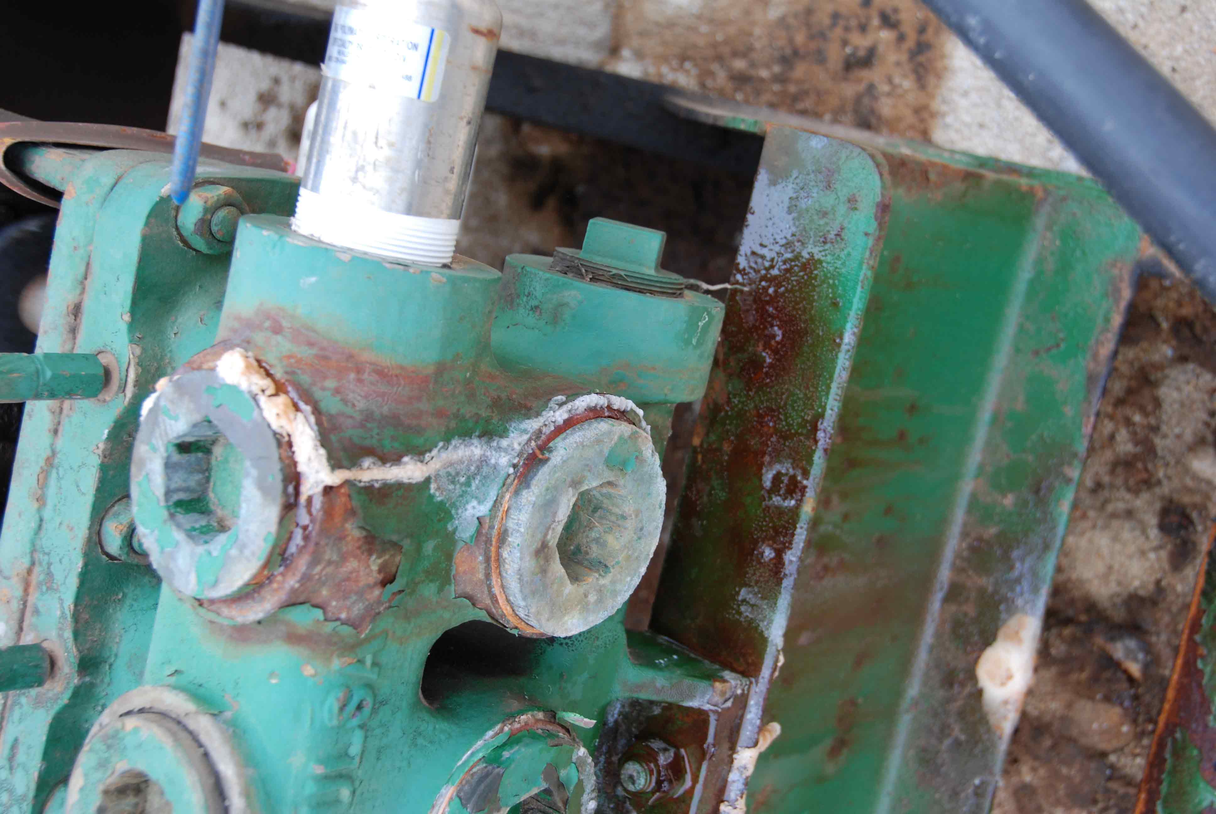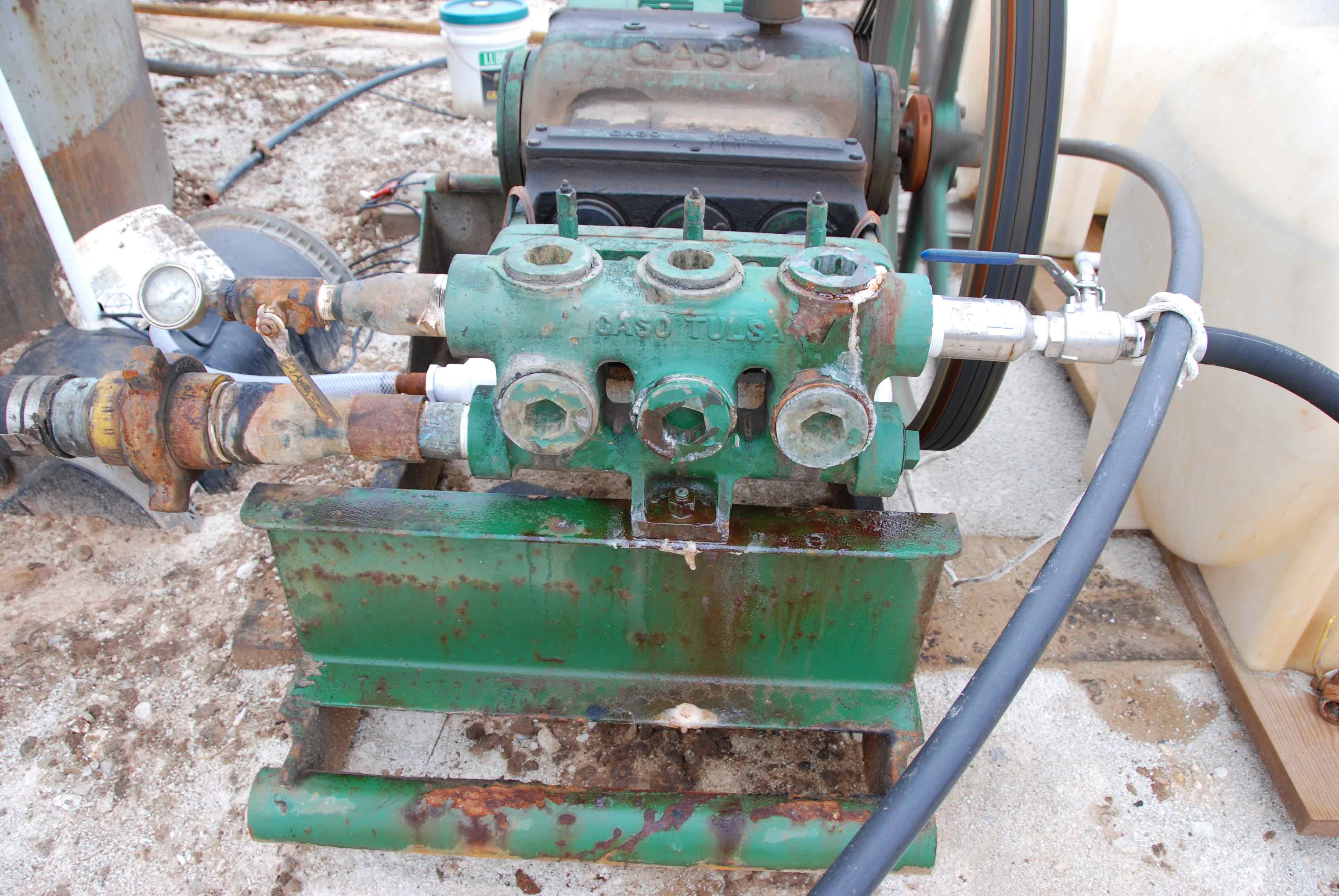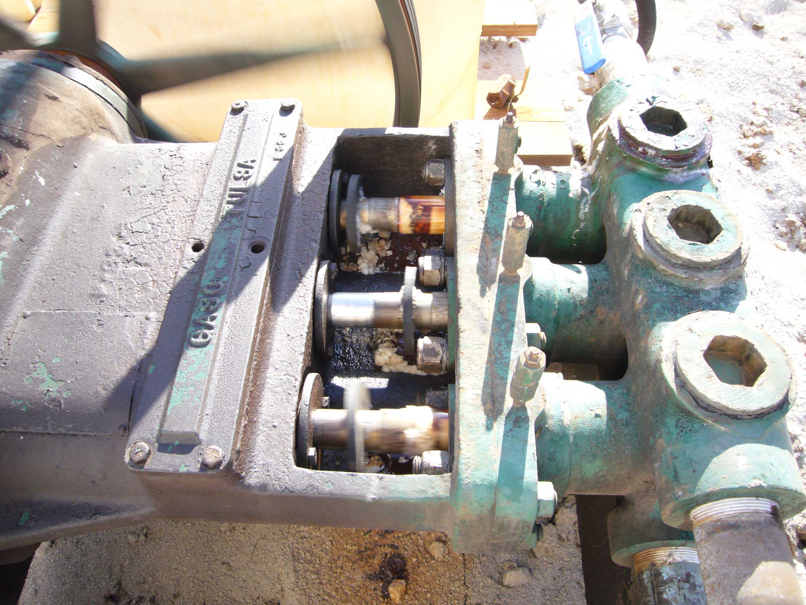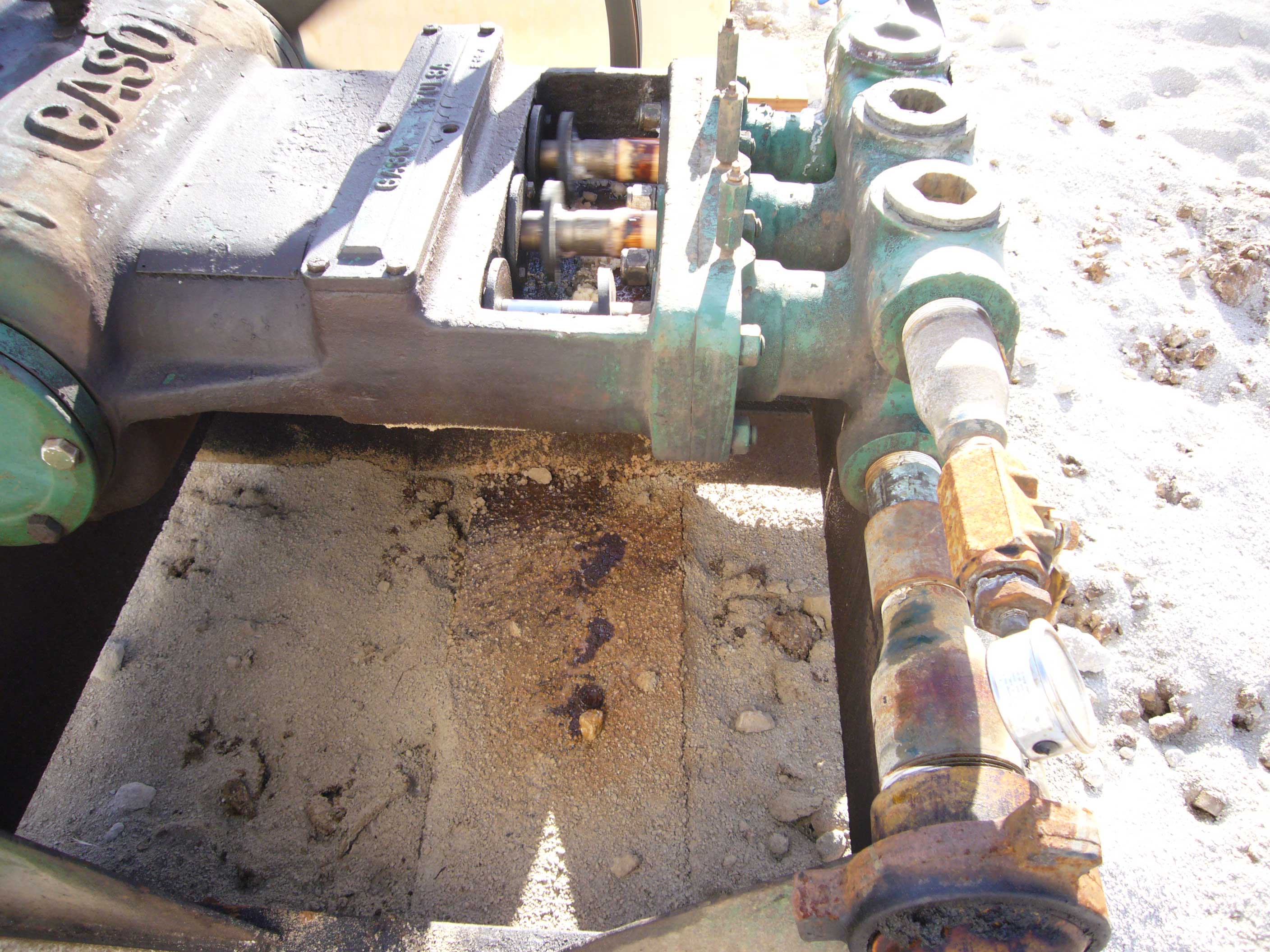 Pump leaking at top and on bottom, saltwater containment device at bottom is not catching all the drips,